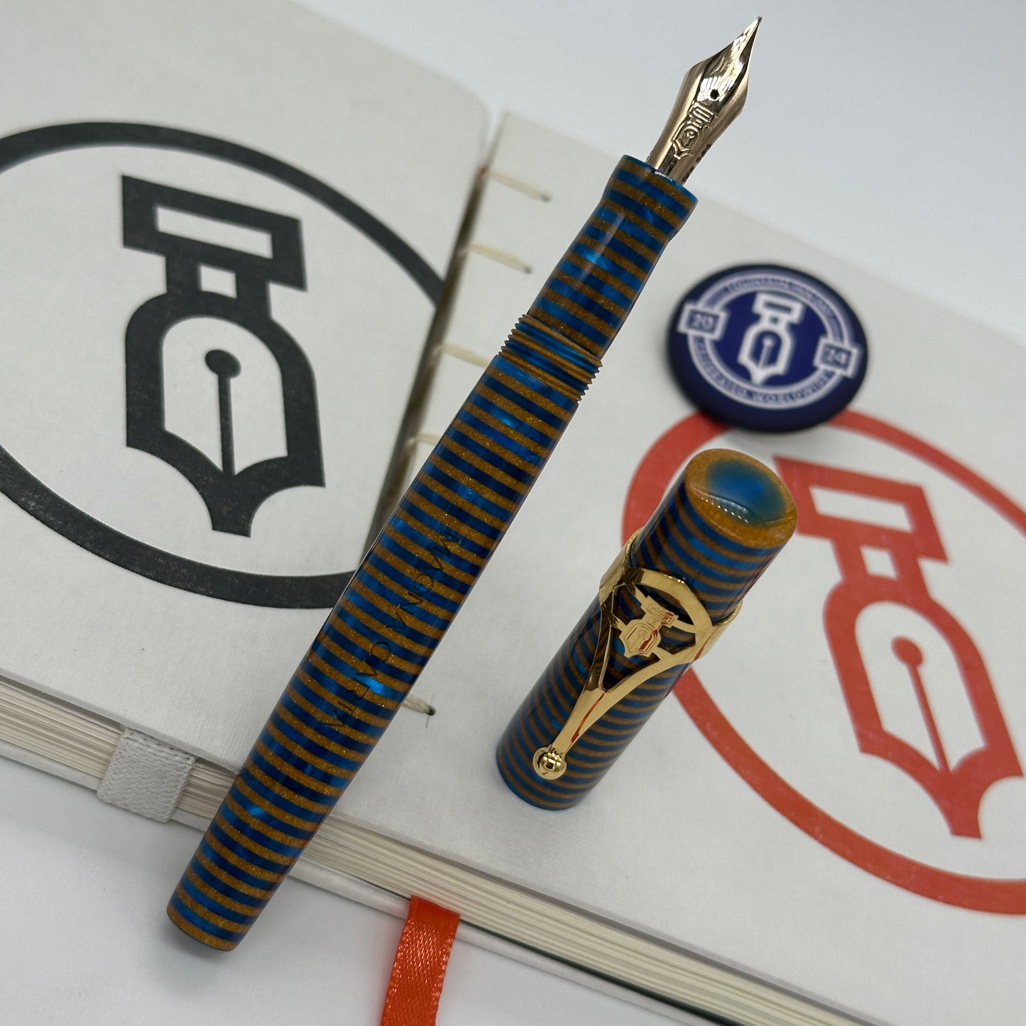 Includes: 2 Fountain Pen Day 2024 Bookmarks, 1 Fountain Pen Day 2024 Button, and 1 Fountain Pen Day 2024 Sticker.